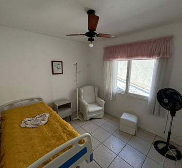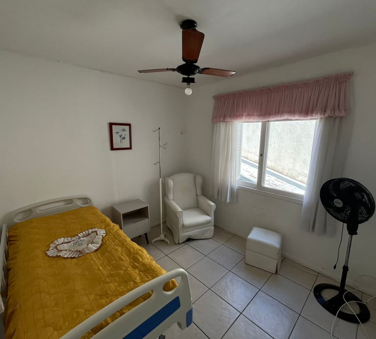 Ambiente tranquilo e acolhedor, ideal para idosos que buscam privacidade e conforto com cuidados 24h.